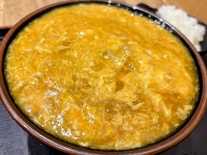 上層が、いりこ出汁 あんかけたまご♪ 下層が、カレー! 〆のご飯をおじや風にすると、また美味い😋