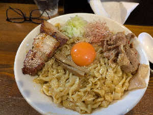限定と迷ったが、極太麺変更×親鶏チー油×大盛り×大盛りで大満足のうまーべらす😋😋😋😋😋