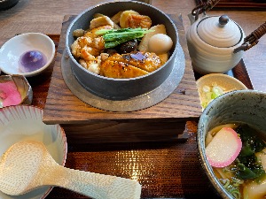 駅前温泉内の食堂にて、上州名物のおっきりこみうどん。熱々で野菜たっぷり。土地の味です。
