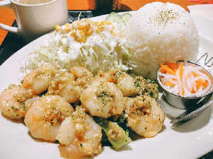 定食が夜でも食べられる、アジアンテイストの素敵なお店✨ライスもガーリック味で、とっても美味しい😄