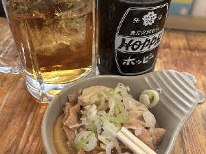 黒ホッピーしか無かった。煮込み150円は破格!