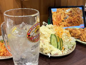 ポテサラは相変わらずデカい(一緒に頼んだツナサラダはさらに山盛り)