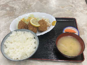 かきフライ1個の中に、牡蠣が2〜3個?うま〜😋