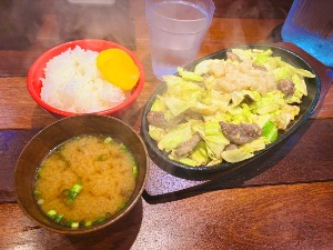 改良湯のすぐ近く。お腹が空き過ぎて飛び込んだが、鉄板焼の肉ロウリュを浴び、ハフハフ食べて幸せ〜
