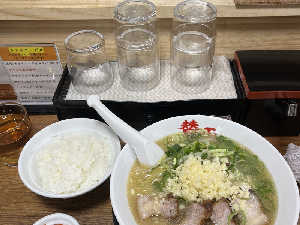 にんにく山盛り濃厚スープにちぢれ麺が合う。