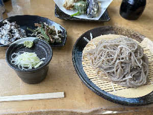 相変わらず混んでいる人気店。春の山菜(天ぷら&ゆで)と大根おろしが嬉しいぶっかけそば。