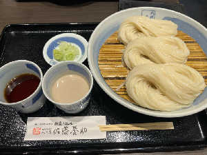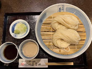 美しい稲庭うどん! 迷うけど胡麻味噌つゆが好きだったかも…!