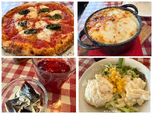 パスタかピザ選べて、サラダバー&コーヒーゼリー&アイスティー食べ飲み放題。満腹だー
