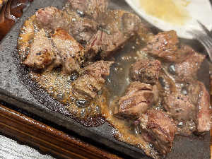 今日はランチがサイコロステーキみたいに切られていた。厚切り一枚肉だからいいのになんかテンション⤵️
