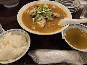 塩味のスープにあんかけの具材が載ったラーメン。豆板醤を混ぜてピリ辛に。うまい。