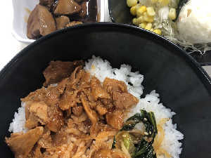 ビビンバ焼肉丼 薩摩ハーブ鶏のレバー煮 ポテト&コーンサラダ