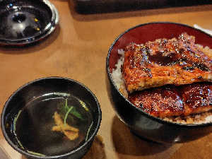 サウナ後にホッとした肝吸いにがっつりうな丼が染み込んできやがる…