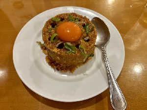 ライスとスープは2回お代わり可。山椒がピリリと効いていてサウナ飯的に満点!