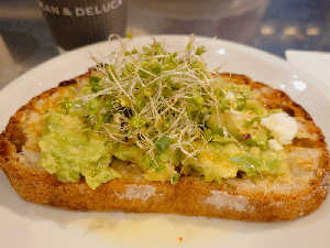 たっぷりのアボカドにスプラウト、塩味とオリーブオイルがベストマッチ