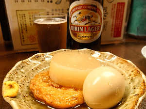 熱々のおでんにクラッシックラガー 田舎蕎麦をつけて。
