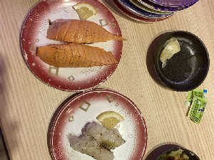 炙りサーモン、エンガワ、ホタテ、甘エビ、中トロ、ヤリイカ、マグロたたき、時知らず、どれもエキゾチック