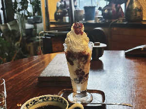 珈琲苦めスッキリ好きな味!パフェは生クリーム、アイスとヨーグルトで美味しい🤤珈琲400円パフェ600