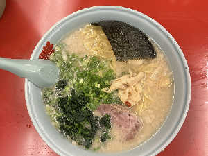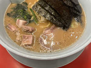 硬め濃いめ油普通ライス添え。 新店だからか床滑らなかった笑