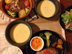 サラダのマスタードシード入りドレッシングもおいしー✨️ お昼は豚丼…肉食デー🍖
