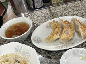 チャーハン味薄い、 餃子は大きくて美味しかった