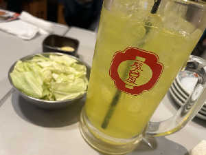 博多劇場のオロポサワー、焼餃子🥟その他もろもろ美味しかった。