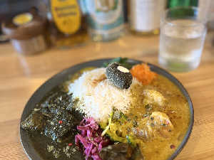 黒胡麻ポークとバターシュリンプの2種盛りカレー