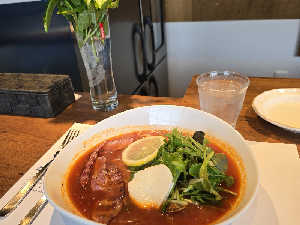トマト🍅スープが濃厚で美味しかった。食材にこだわりを感じるパスタでした