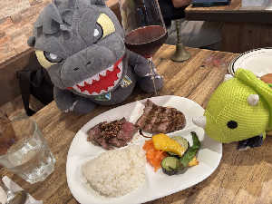 山梨県産の牛さんも豚さんも美味すぎるがお。ワインと合わせたらサイコー怪獣がお。