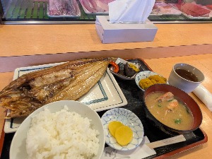 デカくて脂の乗ったホッケ、旨すぎんだろ。小鉢の巨大さが腹に響いた。味噌汁うまい。