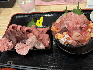 特別わがままオーダー マグロ丼はネタのみで米無し月無し(卵無し) それでも食べ切れずシェアして完食