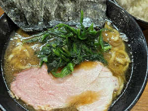 王道の家系といった香りのスープと、海苔、小松菜?焼豚、そしてかためを選択した中太ストレートの麺。美味