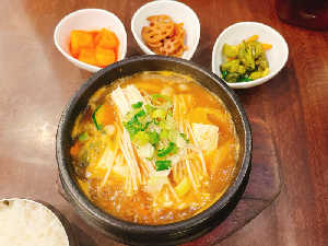 フロントのお姉さんのおすすめの店へ。具だくさんでおいしい。あと海鮮チヂミも食べたよ。