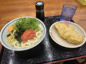 姫若子からド直線の場所にあるお店。 サウナ入りながら「めんたい釜玉食べたいなぁ」と思って。