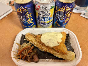 ワンコインのお弁当とたぶん飲み納めの青缶たち