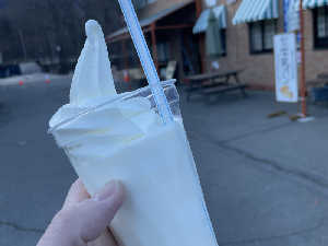 駒ヶ根に来たらやっぱりすずらんソフト🍦飲むヨーグルトの上にソフトが載って運転中でも安心して味わえる👍