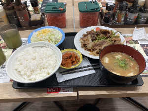 →ダブル盛り🥩、ご飯特盛🍚 →久々松屋、タレが美味い‼️豚汁がしみる🤤今日は控えめ、腹6分。