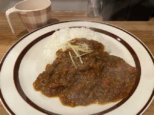 牛すじカレーでトマトと生姜がアクセントで美味い。