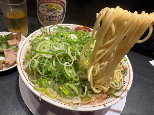 ハシ肉皿でビも。元祖長浜屋も第一旭も、ネギ増量コールを二郎系みたく「ネギマシ」というのは興ざめ。