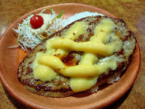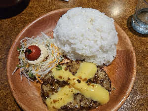 さっぱりした角切りトマトソースとふわふわオムレツがハンバーグのおいしさを爆上げしてくれます