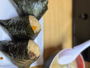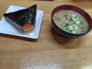 おにぎりは塩としょうゆから選べます。たらこバターはしょうゆが美味しい😋