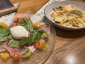 パスタも美味しかったけれど生ハムも美味しかった!ドリンクバーもいい感じ!