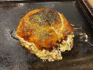 ひとりでお好み焼き食べるの初めてで、よく分からず頼んで腹パンになってしまった(サウナ前)