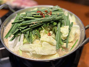 モツ鍋と有田ごどうふの揚げ出し豆腐と馬ふたえご刺しとイカの活け造り