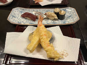コース料理で、鮨が2回もキター。 天ぷらもホクホクで美味し。