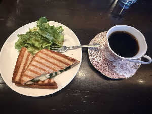 ほうれん草とブリーチーズ美味しい。コーヒーは2杯。