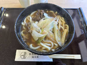 肉うどんの甘いダシが美味い🤤 意外と馬肉タプーリで食べ応えがあった😁