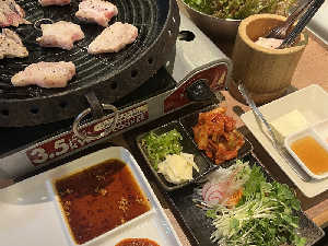 塚原から風呂を体験したあとは刺激が欲しくて韓国料理!サ飯に辛いの合うわー