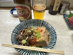気になっていた船橋一平にて‼️✨ 牛煮込み豆腐、マグロ脳天刺し、マグロ顎塩焼き、マグロホッペフライ‼️✨
