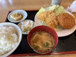 どデカいメンチカツ。大変美味しかったですが店員さんめちゃ忙しそうだった。