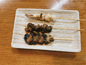 うなぎ串焼き、肝焼き、げそ焼き